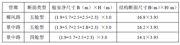 本次设计综合管廊根据入廊管线情况与建设条件,管廊断面尺寸为:
